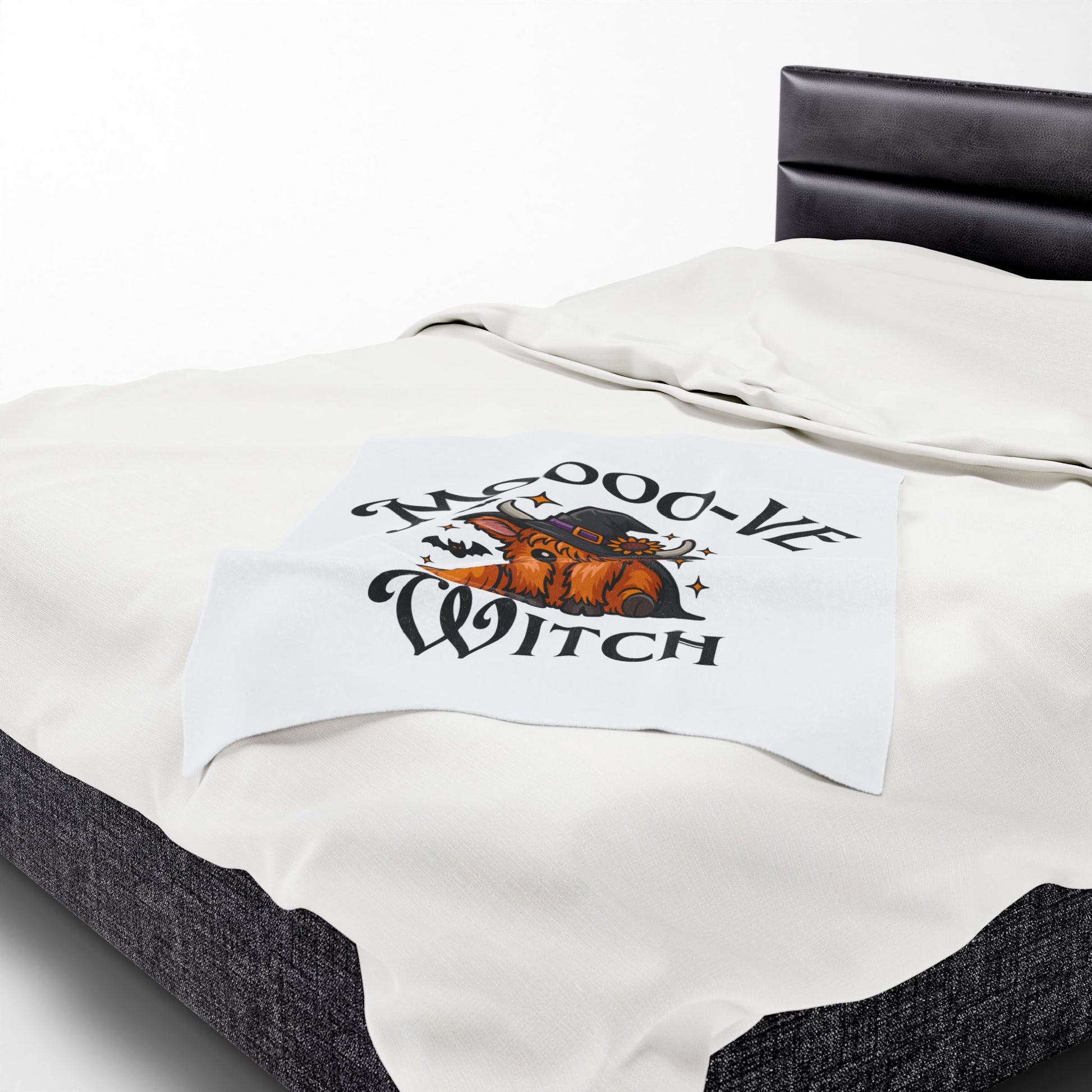 Moo-ve Witch Plush Blanket, Cozy Halloween Throw, Farmhouse Decor, Gift for Witch Lovers, Fall Home Decor
